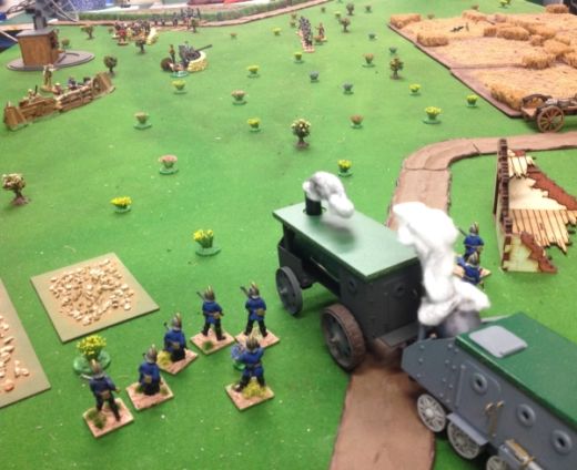 Also on turn two the Engineers disembark from their amoured transport and the mortar fires at the Evil Minions gun, it was a near miss one crewman is felled.